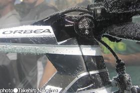 性能もさることながら、エッジの効いたクールなルックスが魅力的な、オルベアのTTバイク「オルドゥ」のニューモデルがこれ。ヘッドパーツがヒンジタイプに変更され、リヤブレーキはBB下に移動。ワイヤ類はもちろん内蔵され、フロントブレーキ以外はすべてトップチューブ上からフレーム内へ入っていく。前作よりもフレームとホイールとのクリアランスが詰められていることからも、空力性能が向上していることが想像できる。国内販売予定あり。