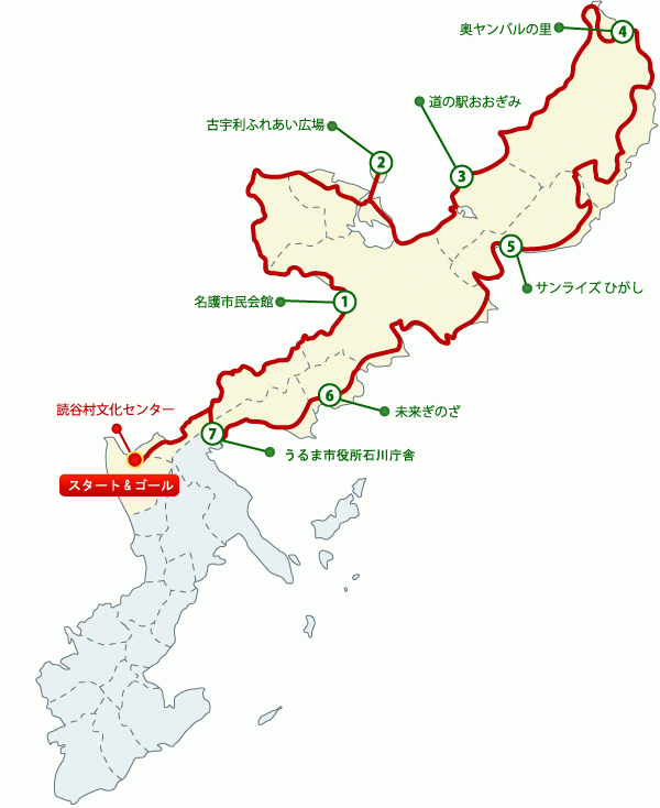 開催地:読谷村文化センターをスタート&ゴール地点とする。