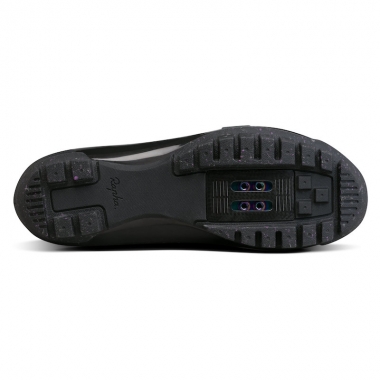 シューズの核となるソールはカーボン製のプレート。ロード用シューズと同様の軽量性と高い剛性を誇るが、1つ大きな違いがある。カーボン製のプレートは、かかとから3cm、つま先から2cmずつ短くカットされているため、前後の柔軟性が向上している。悪路や急坂でバイクを押さなければならない状況でも、快適に歩みを進めることができる。また、頑丈なゴム製トレッドがどんな路面でも抜群のトラクションを発揮。クリートが突き出ないデザインによりスリップの心配もない。