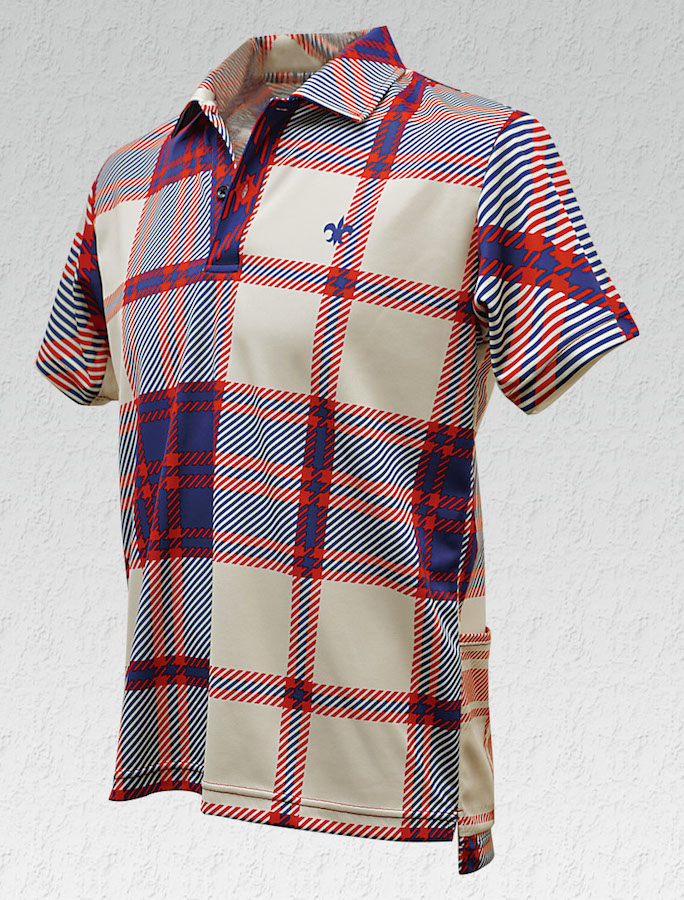 落ち着いたカラーのチェックを全面にプリント。 幅広い年齢層に似合うデザインとなっている。 レジャー、ゴルフにもおすすめ。