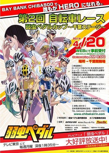 千葉の総北高校を舞台にしたTVアニメ「弱虫ペダル」とのコラボレース「第2回自転車レース 弱虫ペダルカップ」が千葉競輪場にて開催される。