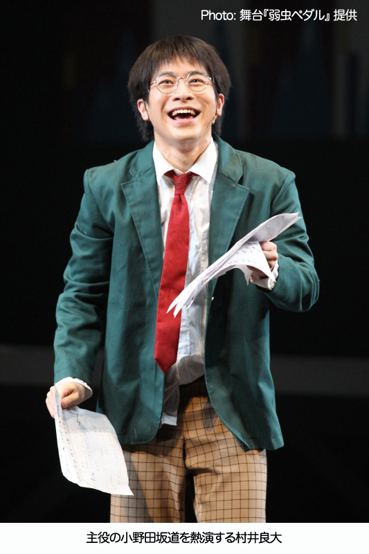 主役の小野田坂道を演じるのは、23歳の村井良大。仮面ライダーディケイドや、戦国鍋TVに出演していた人気若手俳優だ。とにかく身体を動かす、西田シャトナー独自の"パワーマイム"と呼ばれる演出を見事に演じきり、クライマックスではしたたる汗が、ロードレースの感動をよりリアルに伝えてくれた。彼の他にも、2月26日からスタートするTV番組『特命戦隊ゴーバスターズ』(全国テレビ朝日系列)に"ブルーバスター"役で出演することが決まっている馬場良馬が、総北高校3年生のクライマー、巻島裕介役で出演している。