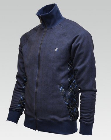 ヘリンボーンツイードを大胆に転写プリントした昇華プリントでのみ再現可能なデザイン。ネイビーベースのヘリンボーンツイードは柄としても珍しく、クラシックな印象に。袖下から脇にかけて落ち着いた印象のチェック柄を配し、遊び心も忘れない。
